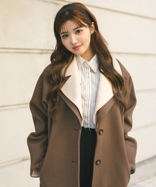 参考商品名:レイヤード風バイカラーロングコート