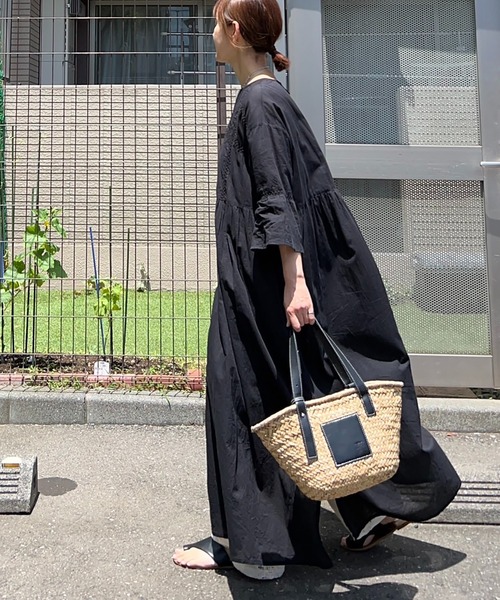 薄くて柔らかく肌触りの良いインド綿のルーズボイル生地を使用しているので、マキシ丈でも重くなりすぎずこれからの暑い時期におすすめな1枚です。