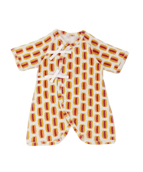 全面にホットドッグのイラストがプリントされたキャッチーな総柄コンビ肌着