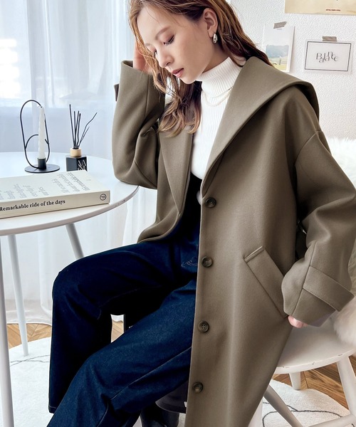 参考商品名:360度レディムード。ニットモッサセーラーカラーロングコート