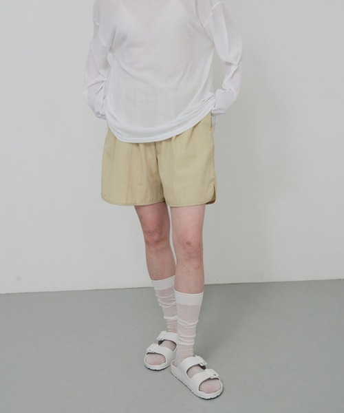 脇から裾にかけてパイピングが施されたショートパンツ。
