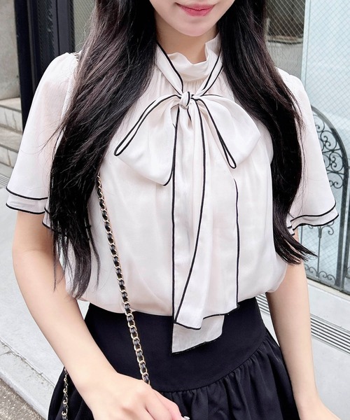 【ラメシアーのリボンボウタイブラウスで大人フェミニンな抜け感を】