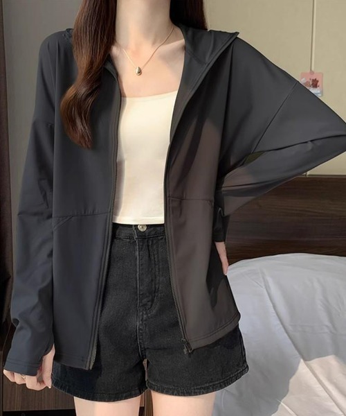 首元までしっかりカバーできるフーディーデザインで、首の日焼け対策も◎