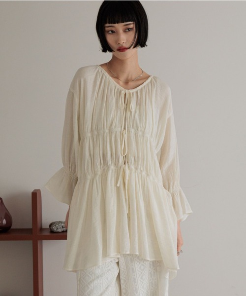 凹凸のある楊柳素材を使用したティアードデザイン。