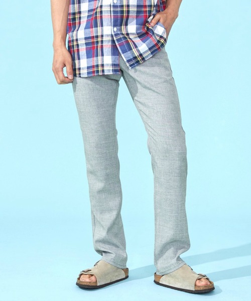 上品でナチュラルな麻風の表情を持ちながら速乾性に優れた生地を採用。また、しわになりにくく乾きやすいイージーケアな素材です。しなやかな風合とはき心地は大人のトラウザースタイルにマッチ。