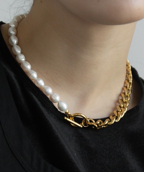 上品なイメージのパールを、エッジの効いたデザインでカジュアルにも取り入れやすく仕上げました。