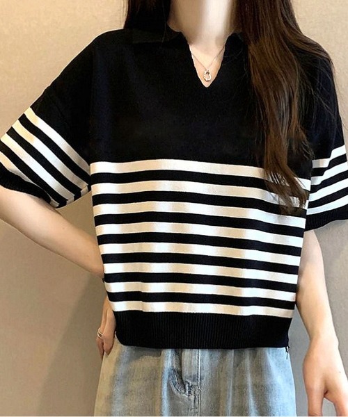 太めのボーダーラインが目を引く配色デザインで、コーディネートに程よいアクセントをプラス。シンプルなボトムに合わせるだけで、こなれ感のある着こなしが叶います。やや短めの丈感が、ハイウエストのボトムスとの相性も抜群です。
