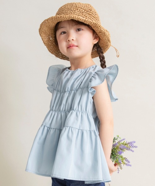 キーワード:ブラウス シャツ キッズ 子供服 女の子 フリル 半袖 無地 ガーリー キレイめ 公園 保育園 旅行