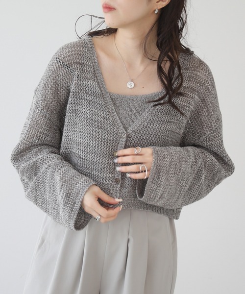 参考商品名:メランジメッシュカーデ+リブニットキャミset
