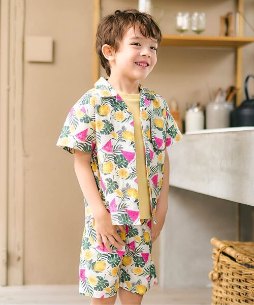 V333065 チェック・サマーフルーツ柄BOYSロンパス