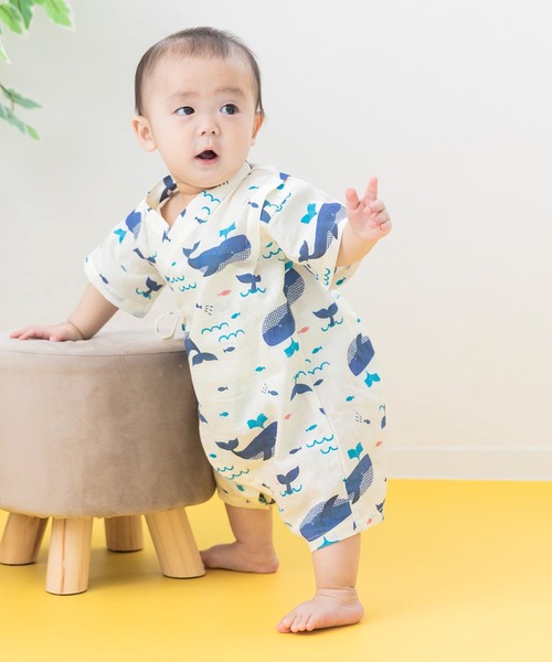 浴衣 綿100% 甚平 半袖ロンパース キッズ 子供 男の子