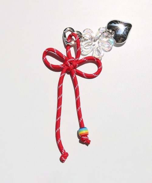 ハート型のビーズと花のモチーフが、シンプルながらも目を引くデザイン。編み込みデザインのストラップは耐久性があり、鮮やかなカラービーズがアクセントとなり、シンプルなバッグや携帯電話に華やかさを加えます。手作りならではの温かみを感じ持ち物の魅力をUPさせてくれるアイテムです。
