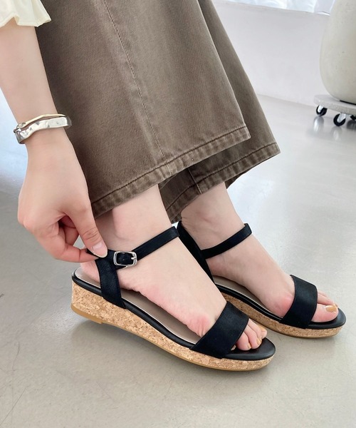 高低差の少ない厚底ヒールはコルクを巻いて夏らしく軽やかな印象にし、低めのヒールなのでフラット感覚で気軽に履けるのも魅力。