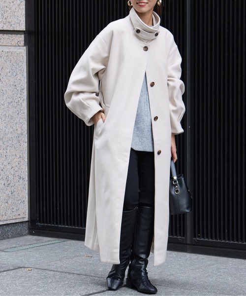 参考商品名:ベルト付スタンドネックロングコート