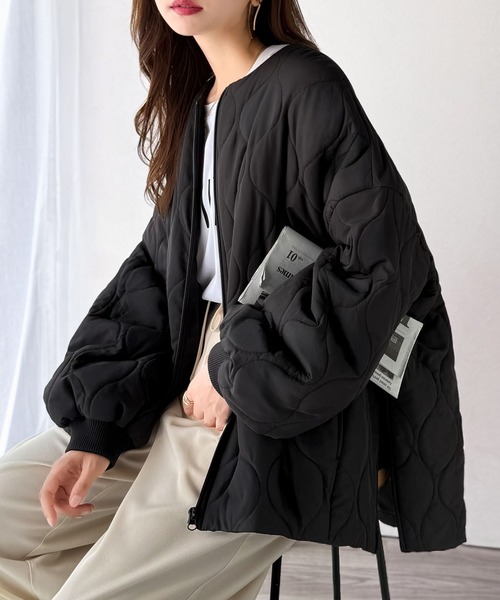 ふんわりシルエットが魅力の軽中綿キルティングジャケット。