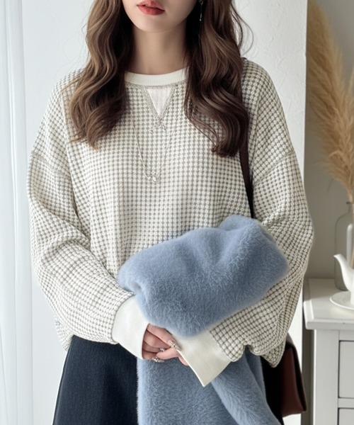 ワッフル編みが心地よい、こなれ感たっぷりのカットソー。