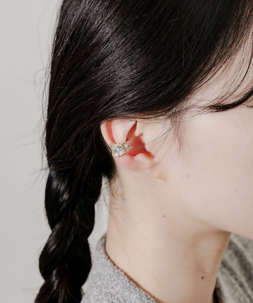 愛らしいハート形のビジューが耳元にさりげない輝きを添えるイヤーカフ。