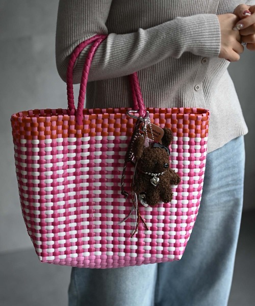 ”目を惹く個性的な配色デザインがこなれ感を演出してくれるカゴバッグ”