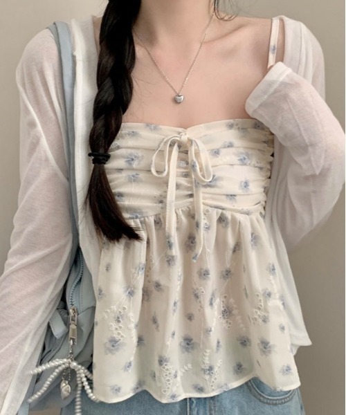 花柄キャミブラウス&シアーカーディガン アンサンブル