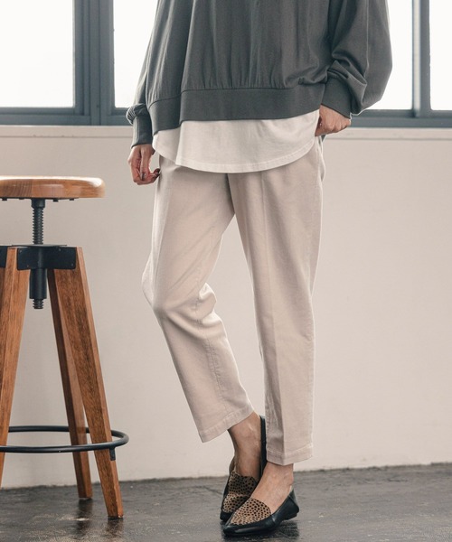 キーワード:パンツ レディース ウエストゴム スタンダード テーパード ハイウエスト フルレングス 無地 秋 冬