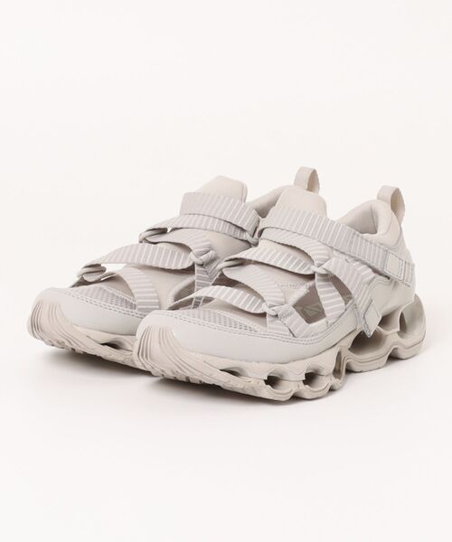 日本を代表するアーティスト「空山基」氏とのコラボレーションモデル“WAVEPROPHECYSORAYAMA”に採用され話題を呼んだ最新の“Infinity Wave”のソールに、スプリントスパイクのノウハウからワンアクションでフィッティングをコントロールできるストラップ仕様のアッパーを採用。独自のフィッティング理論を踏襲したストラップ構造により、ストラップタイプでありながらフィット性の高い構造に仕上げた。スパンデックスで履き口周りを仕上げることで伸縮性が高く脱ぎ履きのしやすさに配慮しており、トゥーガードや通気性の高いメッシュ、アウトドアのシーンでの持ち運びや吊るして乾かすことを想定したヒールストラップなど、ディティールにこだわった1足。