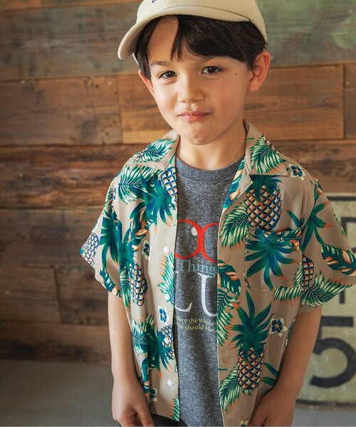 夏っぽい大きな総柄デザインのアロハシャツは