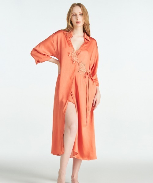 肌に心地よくなじむ軽やかな素材と、ゆったりとしたロングシルエットが、リラックスした時間に上品さをプラス。