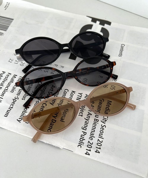 楕円形レンズが特徴的なオーバルフレームサングラス。