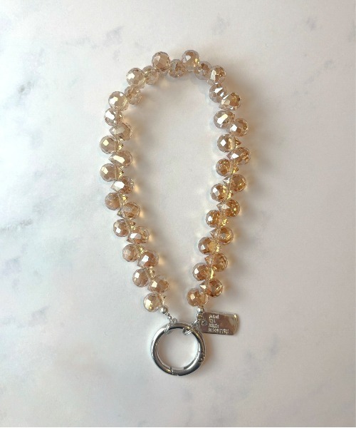 キラキラと輝くカットビーズが印象的な、アクセ感覚で使えるスマホストラップ。