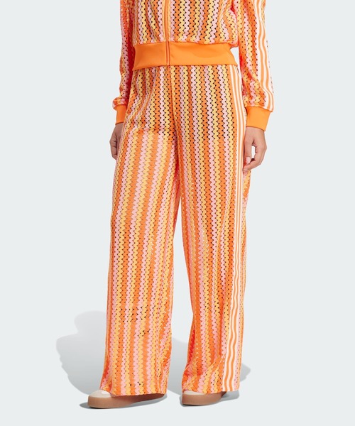 【アディダス公式ショップ】クロシェ編みのディテールがユニークな、ゆったりしたトラックパンツ。人気のファイヤーバード トラックパンツが進化を遂げて登場。とびきり軽いはき心地になった、アディダス オリジナルスのパンツ。クロシェ編みのディテールを施し、ゆったりとしたシルエットに仕上げたパンツは、通気性に優れ、動きやすい。エンジニアードスリーストライプスとトレフォイルロゴがアクセント。