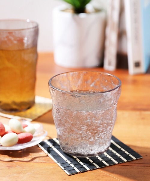 手に馴染む、立体的ででこぼことしたデザインが特徴的なのショートグラス。