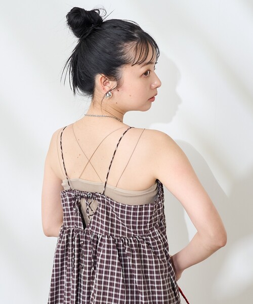 ●華奢なスパゲティストラップやバックのリボンが女性らしさを添えます