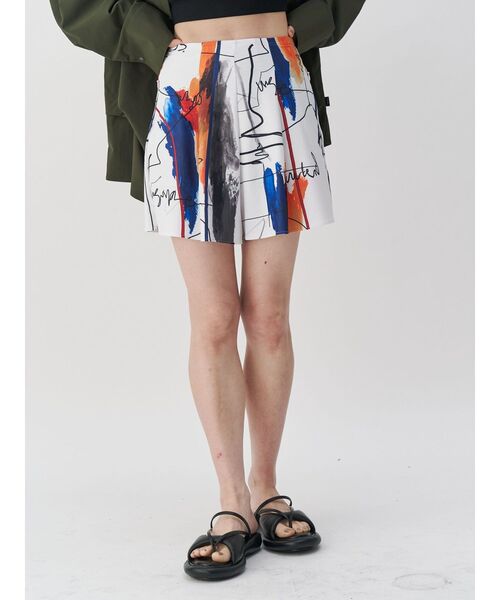 オリジナルのRAKUGAKI ARTプリントを大胆に使ったショートパンツ。ハイウエストでフロントにタックが入っているので、スタイルアップしつつ、気になるお腹まわりをカバーしてくれます。
