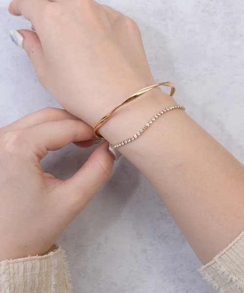 お肌に馴染みやすいひねりラインのバングルと動きのあるダイヤレーンのチェーンが女性らしい華奢な印象に。