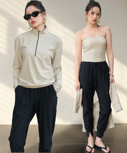 スウェットパンツとレギンスを混ぜたようなニュアンスになっており、足をすっきり見せてくれます。