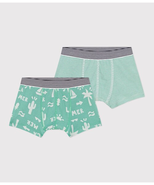 アイコニックな極細のミラレボーダーとポップなLA MER (海) を彷彿とさせるプリントを揃えたトランクス2枚セットです。環境にやさしく、第二の肌と呼ばれるほどやわらかな1x1リブ編みコットン素材を使用し、ナチュラルで快適な着用感を実現しています。ミラレボーダーのウエストゴムが贅沢なアクセントに効いた、ギフトにもおすすめのセットです。※濃色の製品は、摩擦や洗濯の際に色落ちや色移りをする場合があります。中性洗剤で単独洗いをしてください。