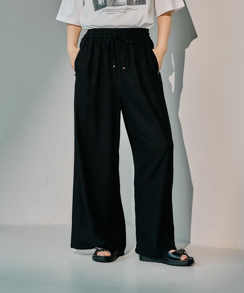 リネン混素材を使用したイージーパンツ