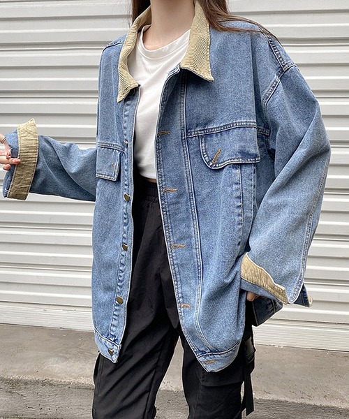 参考商品名:コーデュロイ縁取りのゆったりデニムジャケット