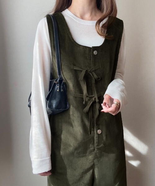 参考商品名:リボンデザインコーデュロイサロペット[高身長サイズMT/低身長サイズS有り]