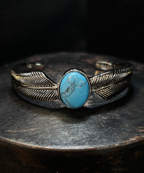 羽デザインがおしゃれ。黒、ターコイズの石がシンプルデザインで高級感を演出。