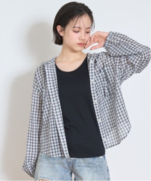 シアー感のある素材を使用したさわやかなチェックパーカです。
