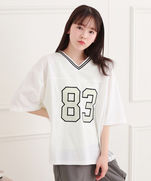 ナンバリング部分とサイドがメッシュ素材になったトップスと、カラータンクトップのセットアイテムです。