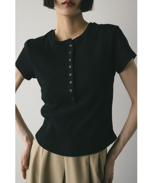 コンパクトなシルエットがポイントのヘンリーネックTシャツ。
