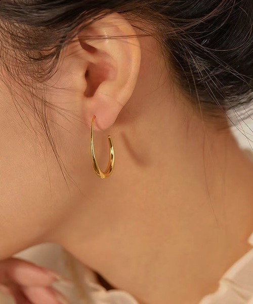 上品な曲線が美しい、しずくモチーフのフープピアス。