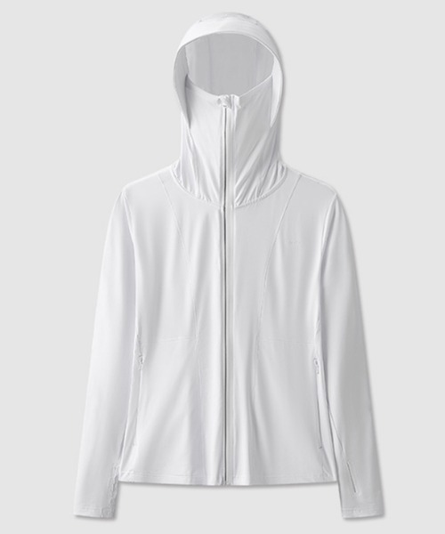 目元を残した高めのジップアップや指抜きデザイン、バイザー付きのフードなど、紫外線カットのための機能性にもこだわりました。