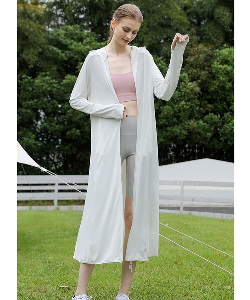 ショートボトムの日でも脚をカバーすることができるので、日焼け対策に重宝する1枚です。