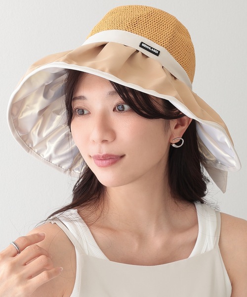清涼感のあるメッシュ調のクラウンに、ギャザーたっぷりの華やかなつばをドッキング。