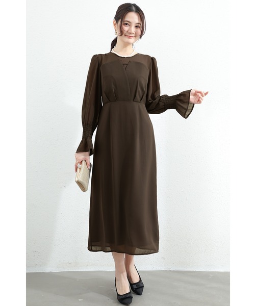 ワンピースドレス パーティードレス レディース ドレス ウエスト ゴム入り セレモニードレス オケージョン シフォン生地 透け感 スカート タイト 長袖 結婚式 謝恩会 発表会 食事会 かっこいい きれいめ 着心地 ゆったり カジュアル 抜け感 大人 フォーマル オールシーズン 大きいサイズ エレガント 上品 二次会 演奏会 同窓会 セレモニー 袖あり バックスリット入り ブラック 黒 ブルーグレー 青 灰 コーヒー 茶 ダークグレー 黒灰 ネイビー 紺 20代 30代 40代 50代 60代 M L XL 9号 11号 13号 ycpt20