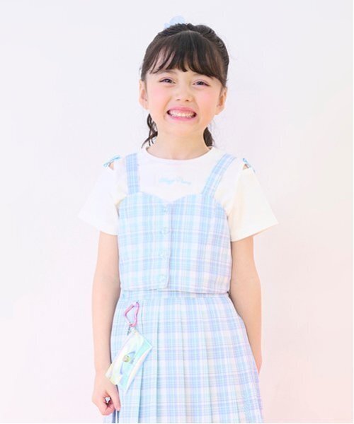 さわやかなチェック生地で仕立てたビスチェとTシャツのセットです。