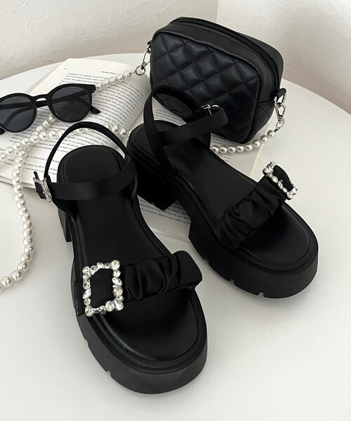 厚底/サンダル/ビジュー/シンプル/大人可愛い